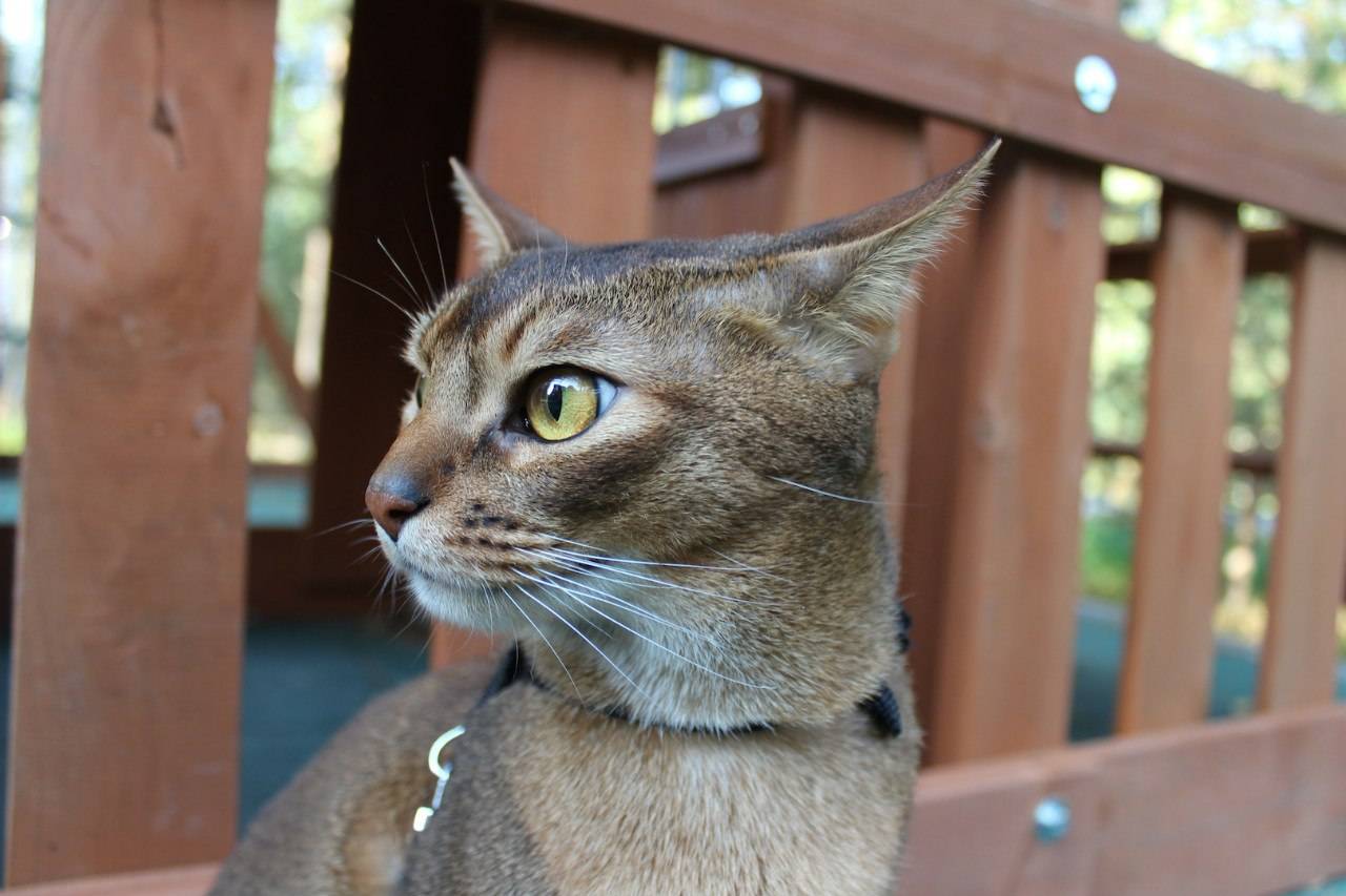 Абиссинская кошка на свободном выгуле.