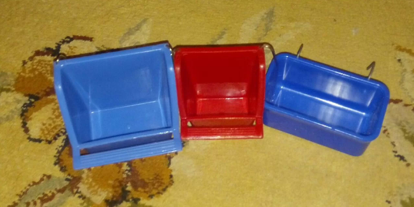Помимо прочего, попугаям понадобится ванночка для купания. Выбирают такую, которая крепится на дверцу клетки и находится при этом снаружи. Таким образом, влага не попадёт на подстилку и в кормушки. Воду наливают на 2 см. Используют чистую, фильтрованную жидкость, необязательно кипячёную.