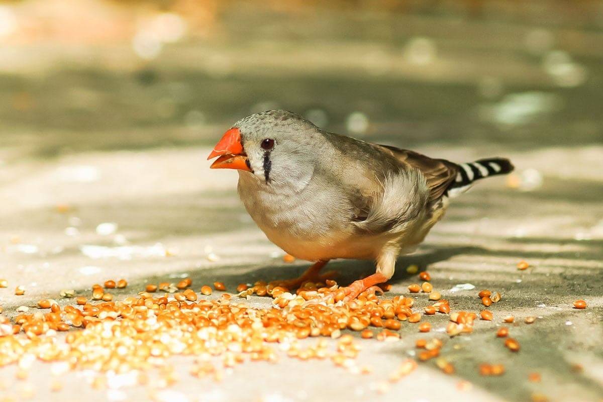 Рацион амадины должен состоять на 70% из зерновой смеси (просо, льняное семя, семена луговых трав, овсянка). Дополнительно птицам полезно давать мешанку из вареных яиц, пресного творога и толченых сухарей.