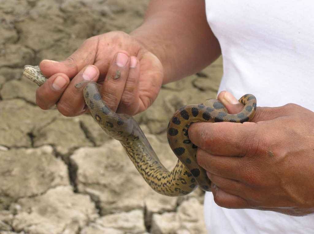 . Единственный официально зафиксированный случай нападения на человека – нападение на ребёнка из индейского племени, что можно считать случайностью. Когда человек находится в воде, змея видит его не полностью и может легко принять за капибару или детёныша оленя. Анаконда не охотится на человека, а местные племена индейцев часто ловят анаконд ради нежного и приятного мяса, а из кожи делают различные сувениры и поделки для туристов.