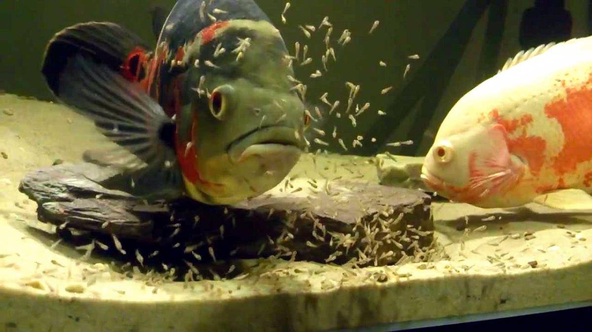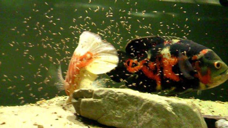 Если пара астронотусов живёт в просторном видовом аквариуме с соблюдением условий содержания, то нерест у них будет проходить регулярно.