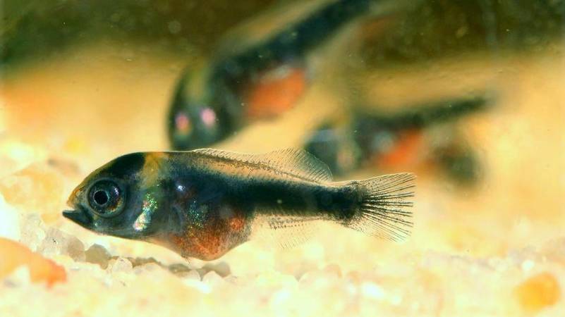 В конце срока самка и самец вместе определяют место будущего яйцеклада. Обычно это крупный камень, который обязательно должен быть в нерестовом аквариуме. Затем в течение нескольких часов мама откладывает до 1000 крупных икринок в форме эллипса. Родители тщательно следят за будущими детьми и удаляют из кладки погибшие яйца. Уже через 3-8 дней из икринок вылупляются личинки – они питаются веществами из желчного мешка первые 4 дня.