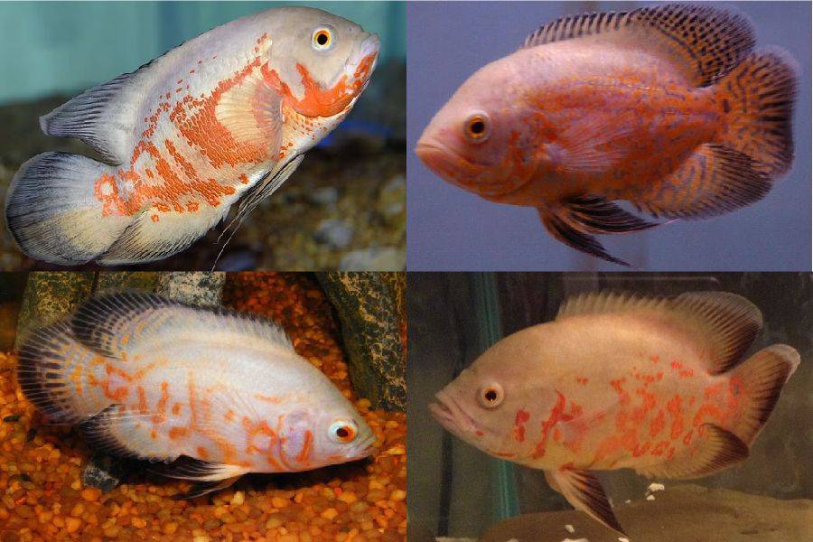 Молодые особи значительно отличаются по окрасу от взрослых. Пятна на их теле светлые, почти белые. Это выглядит эффектно, но по мере взросления рыбы пятна поменяют цвет. Селекционерами сегодня выведено несколько гибридных форм, которые имеют красный окрас тела.