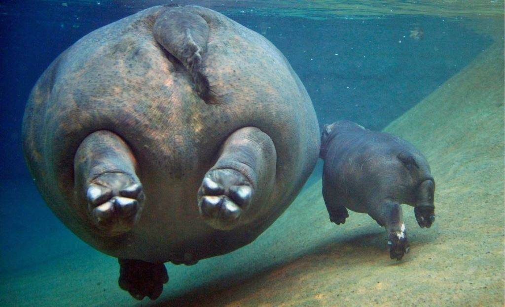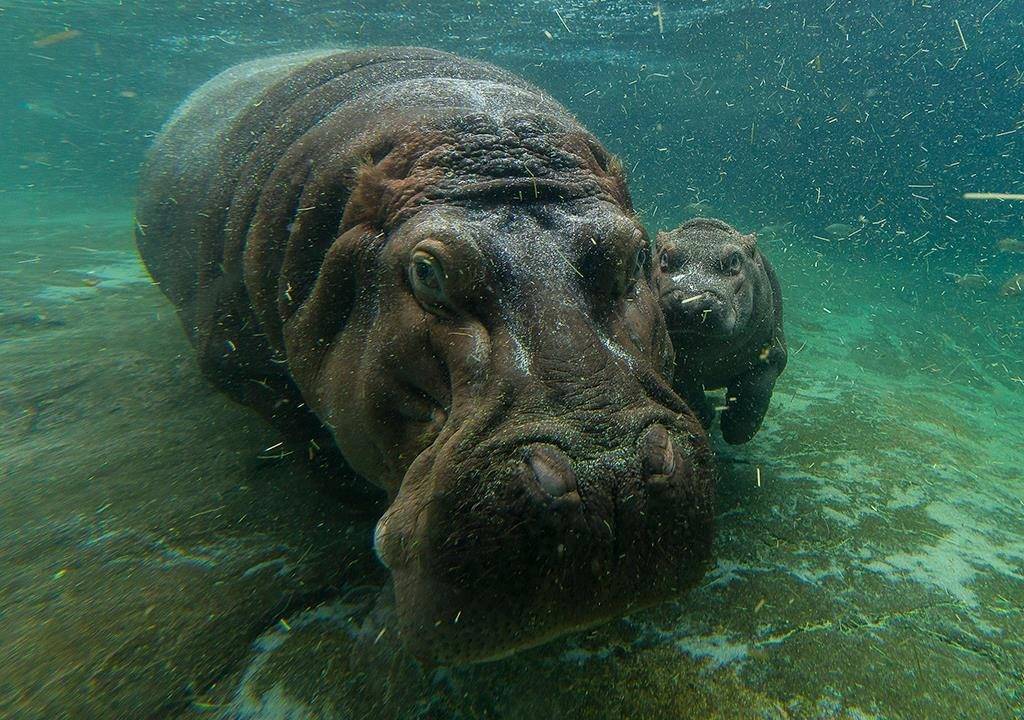 - Рождение и выращивание детенышей бегемота осуществляется в воде, точно так же как и у китов;