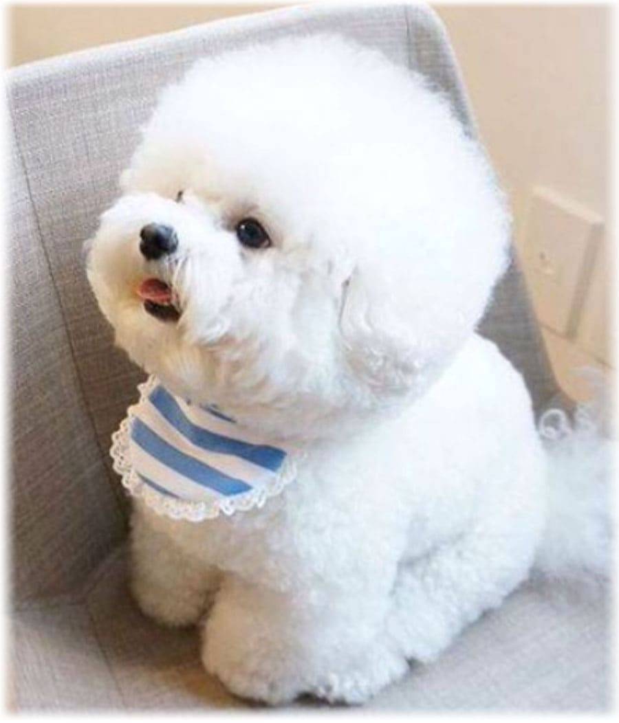 Фото щенок бишона в слюнявчике