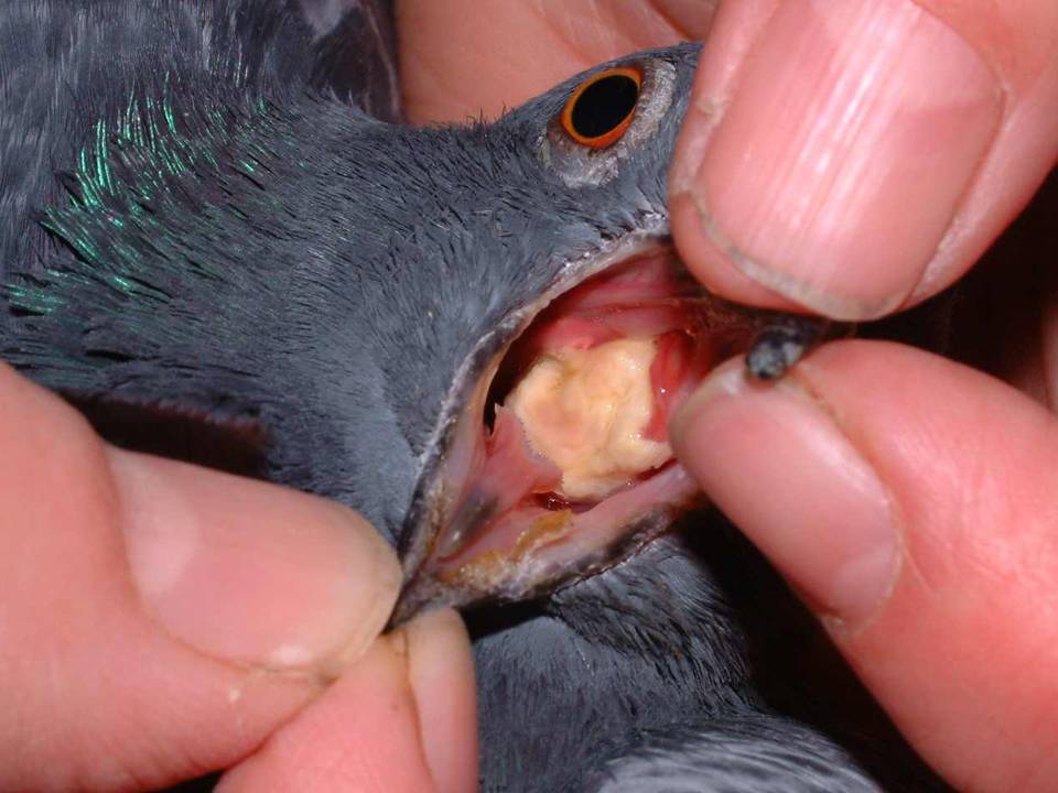 При трихомонозе в ротовой полости голубя образуются желтые пробки