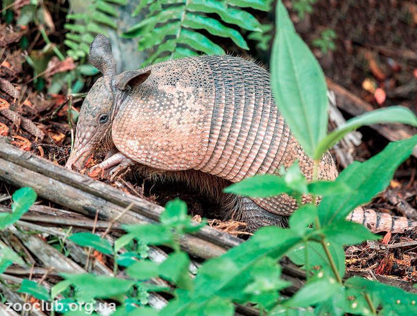 Самый распространенный и наиболее изученный вид – девятипоясный броненосец (фото ниже).