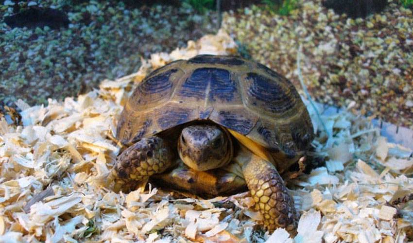 - Рекомендуется использовать грунт для сухопутной черепахи, который засыпается на покрытие. В качестве него подойдет песок и глина, крупный гравий, сено и опилки, лучше все эти наполнители перемешать. Размер толщины слоя грунта должен составлять 3 сантиметра.