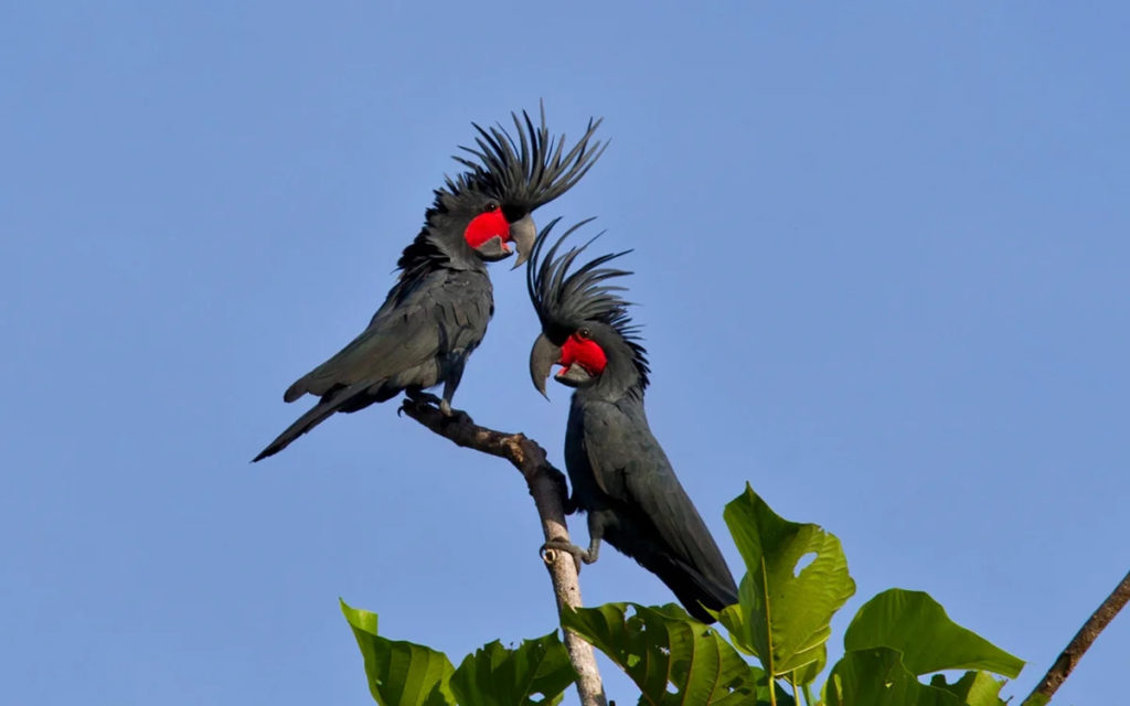 Черный краснохвостый какаду — ближайший птичий родственник пальмового, а характеры и внешний вид у них разные. Вот и разбери этих какаду!