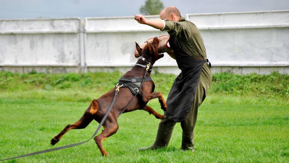 Лучше всего записать пса на специальный курс подготовки. К процессу воспитания добермана, желательно подключить опытного кинолога, который в первую очередь обучит питомца основному курсу, после чего наступит очередь обучения защиты хозяина. Это единственный правильный путь, для того чтобы вырастить из щенка серьёзного и надёжного друга.