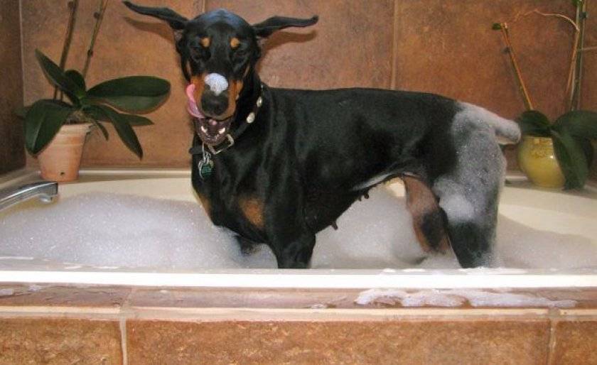 Содержание добермана в квартире не такое хлопотное, как может показаться. Эти замечательные собаки практически не требуют за собой ухода. Как и любую другую собаку схожих размеров, не следует купать чаще 2-3 раз в год. Можно просто протирать мокрым полотенцем, при необходимости. При частом купании у собак пропадают защитные свойства кожи и шерсти.