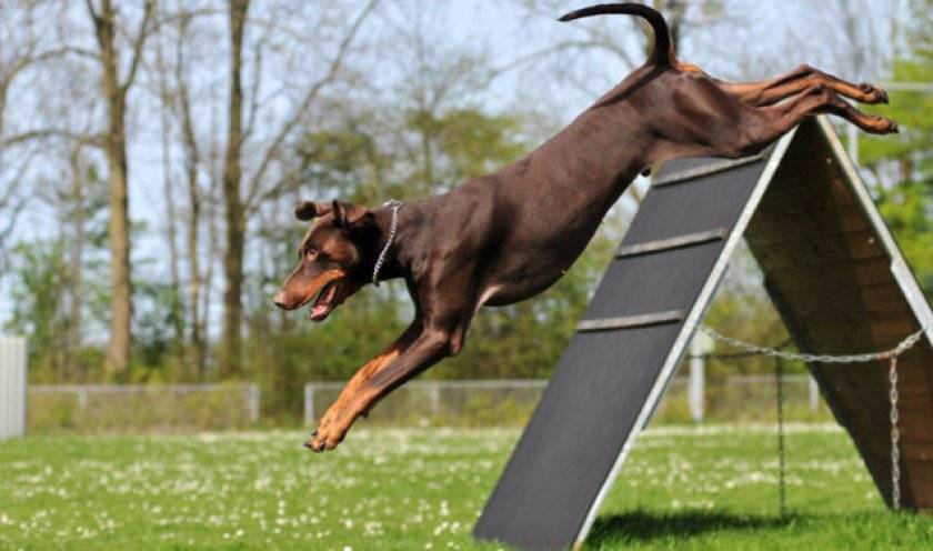 Дрессировка добермана — трудоёмкий процесс, ведь это своенравная и свободомыслящая порода собак. Хозяин должен быть очень настойчив во время дрессировок.