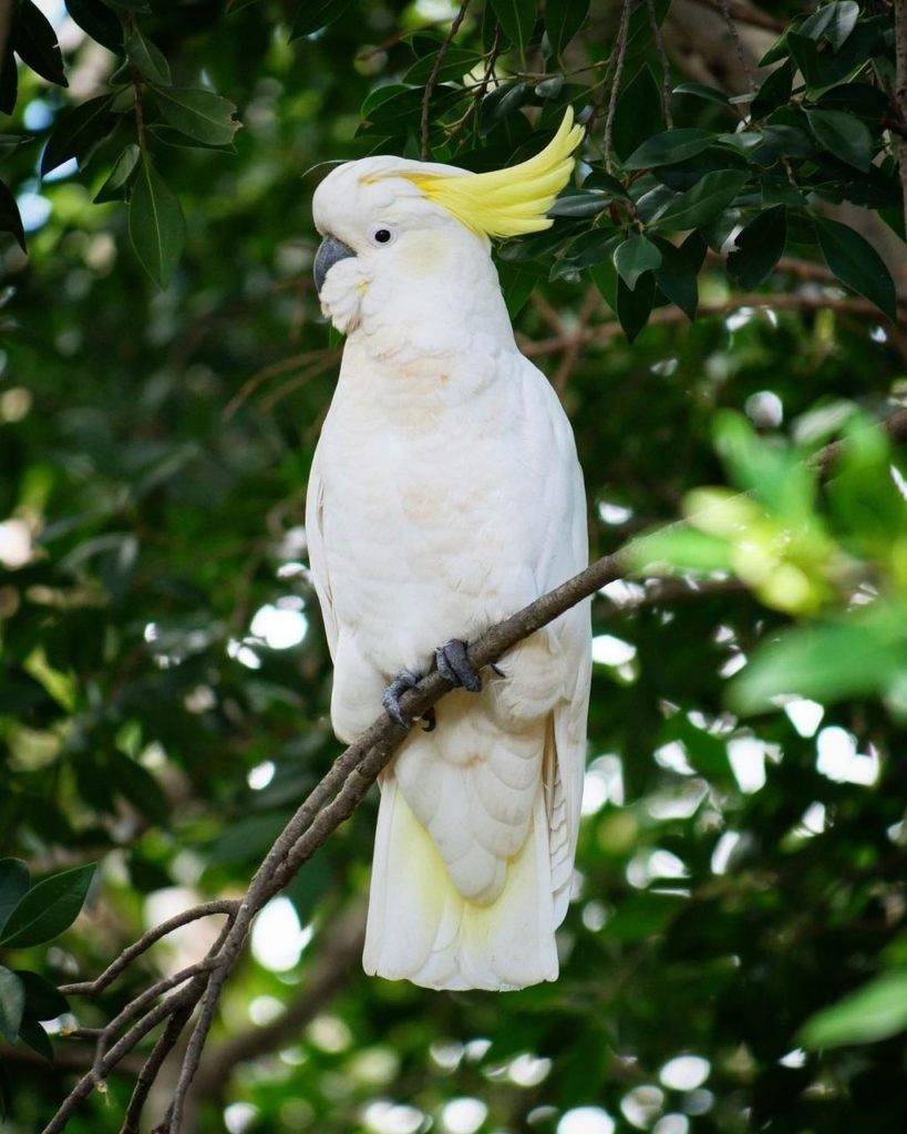 Попугаи какаду известны многим. Их отличительной чертой является крупный хохолок на голове и крепкий, массивный клюв. Чаще всего какаду имеют белый окрас, но также можно встретить особей с желтым и даже черным оперением. Питаются они травой, разными насекомыми, побегами плодовых растений и, благодаря строению клюва и языка, орехами. Ареал обитания какаду небольшой, встретить эту птицу можно в Австралии и Новой Гвинее, реже на островах Тихого океана.