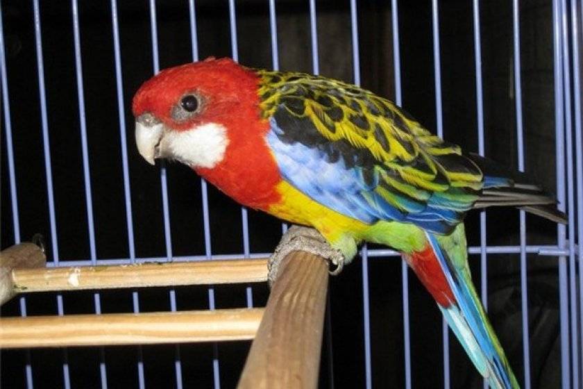 Для попугая вида красная розелла следует выбирать достаточно просторную клетку. Чтобы птичке не было грустно, её желательно разместить в таком месте квартиры или дома, где чаще всего бывают хозяева.