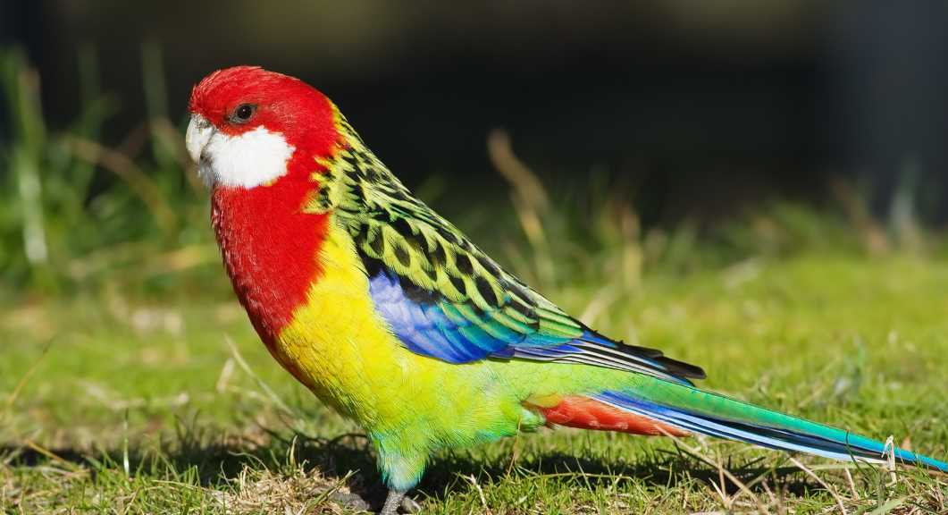 Выглядит Розелла просто изумительно. Она обладает ярким, пышным и длинным хвостом. Окрас тела может быть самым разным – в природе встречаются десятки вариантов. Преимущественно это сочетание красного, желтого, черного и синего цветов. Самой популярной считается пестрая Розелла – за счет необычности и насыщенности своего окраса.