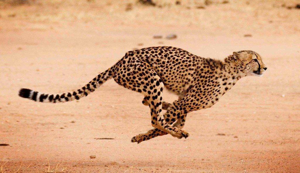 Гепард — самое быстрое животное на земле. Максимальная скорость гепарда варьируется от 80 до 128 км/ч, в среднем около 112 км/ч. При этом средняя скорость животного гораздо ниже, поскольку во время охоты большую часть времени хищник двигается гораздо медленнее, перемежая стабильную погоню короткими взрывными спринтами на максимальной скорости. В среднем животное передвигается со скоростью 40-65 км/ч, что сопоставимо со скоростью автомобиля в крупном городе, то есть тоже немало. У гепарда отличный разгон и стартовая скорость — дистанцию 100 метров животное пробегает за 6 секунд. За один прыжок хищник покрывает от 4 до 7 метров.