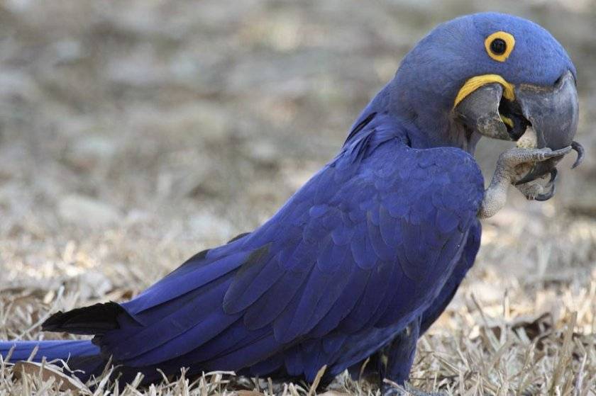 Гиацинтовый ара относится к одним из самых крупных и красивых попугаев в мире. К тому же эти пернатые являются долгожителями, так как в дикой природе могут дожить до 70 лет.