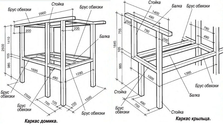 Его построить несколько сложнее, чем все остальные элементы, но вполне возможно. Во-первых, нужно будет установить надежные опоры из деревянных брусков сечением 100х100. Во-вторых, необходимо правильно выбрать материал для кровли крыши – это может быть тот же, который был использован при постройке жилого дома.