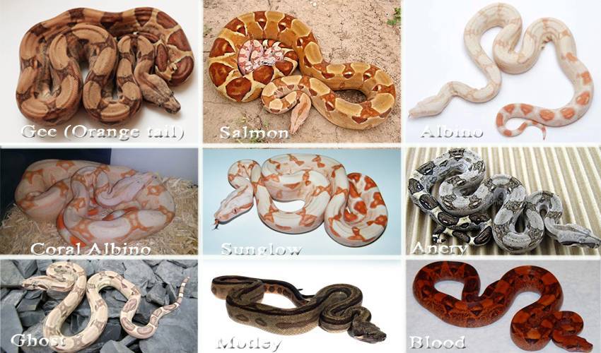 Поскольку морф этого вида змей невероятное множество и даже объёма одной статьи будет не достаточно, для простого их перечисления с кратким описанием, мы рассмотрим только самые распространённые, основные.