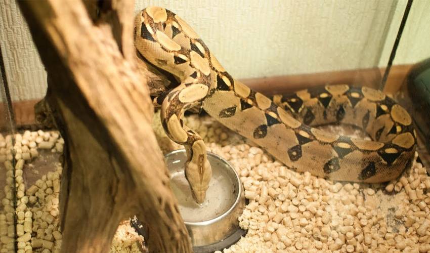 Императорские удавы пьют воду, поэтому её следует часто менять в бассейне и поилке.
