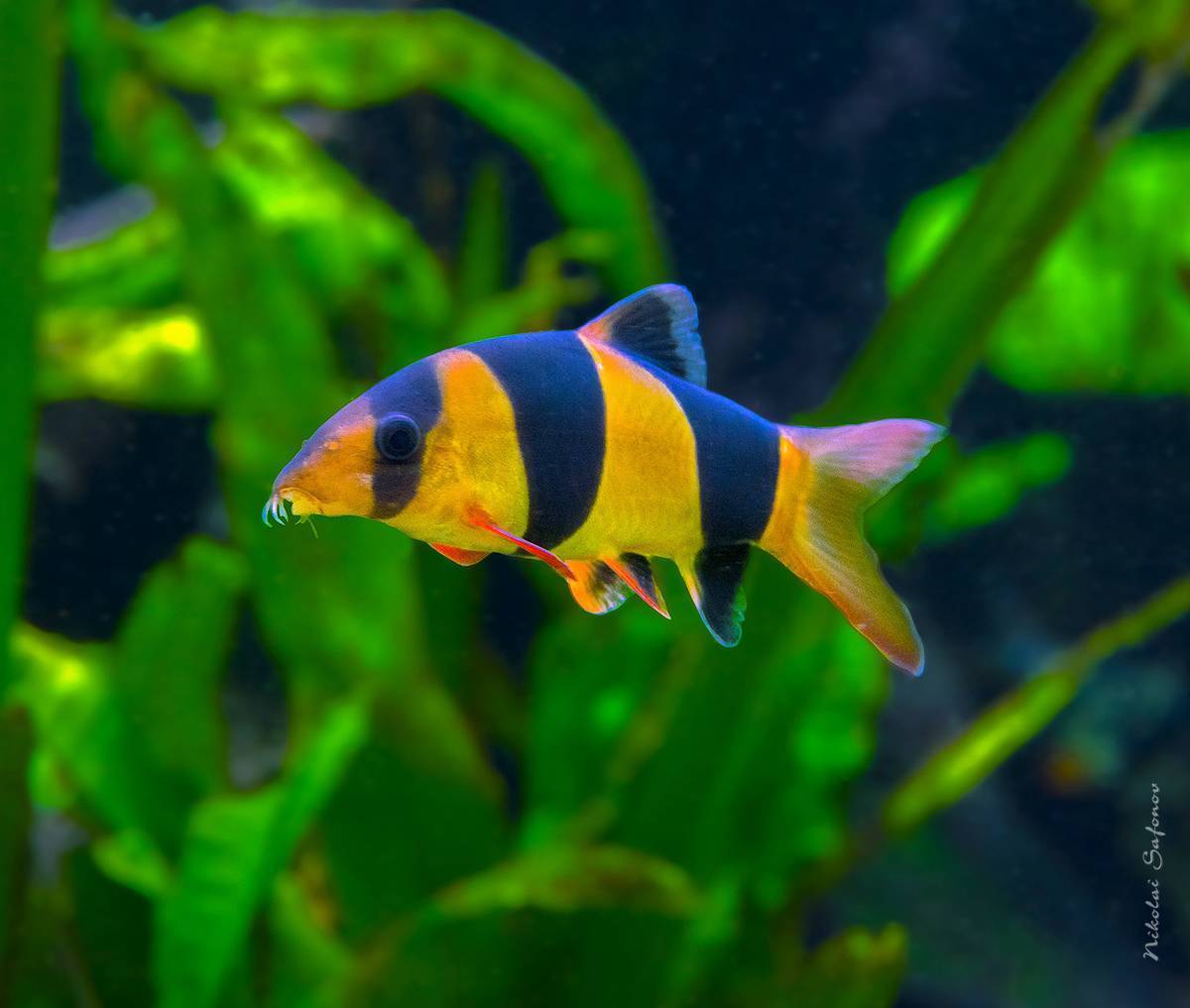 Боция-клоун – рыбка из одноимённого семейства, встречающаяся в водоёмах Борнео и Суматры. Помимо яркой, запоминающейся внешности, эта рыба обладает одной очень полезной привычкой – она поедает улиток в аквариуме! Причем не всех, а “сорных” бесстворчатых. Некоторые улитки способны расплодиться в огромных количествах, портя растения и общий внешний вид.