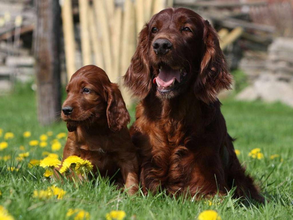 Сеттер ирландский хорошо уживается и с людьми, и с другими животными. По этой причине он никогда не станет грозным сторожем. В характере периодически проявляется упертость.