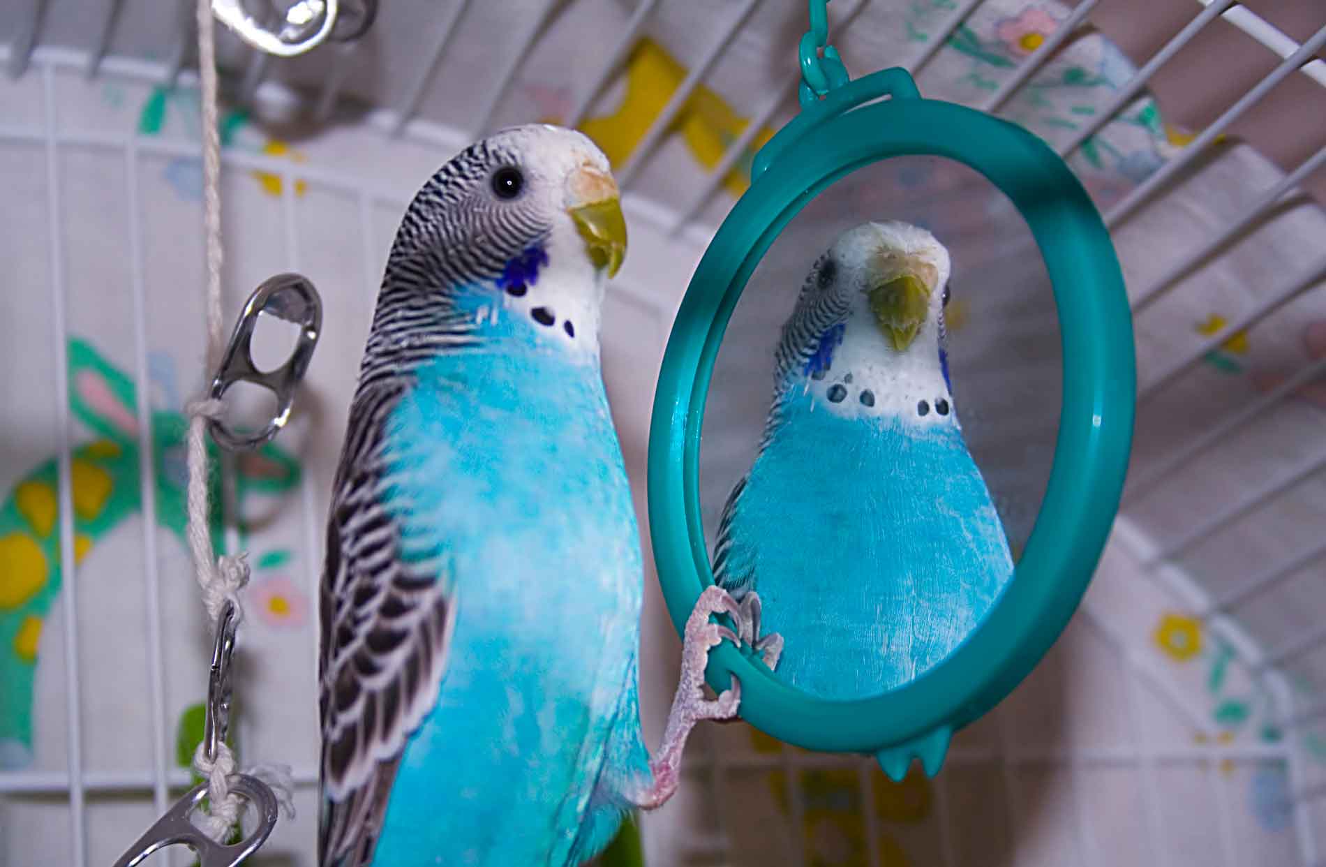 Птица будет подолгу и с удовольствием курлыкать на своем языке с соседом или соседкой. Ваши поползновения попугаю будут неинтересны совсем. То же самое касается зеркал, качелей, колокольчиков и других развлечений