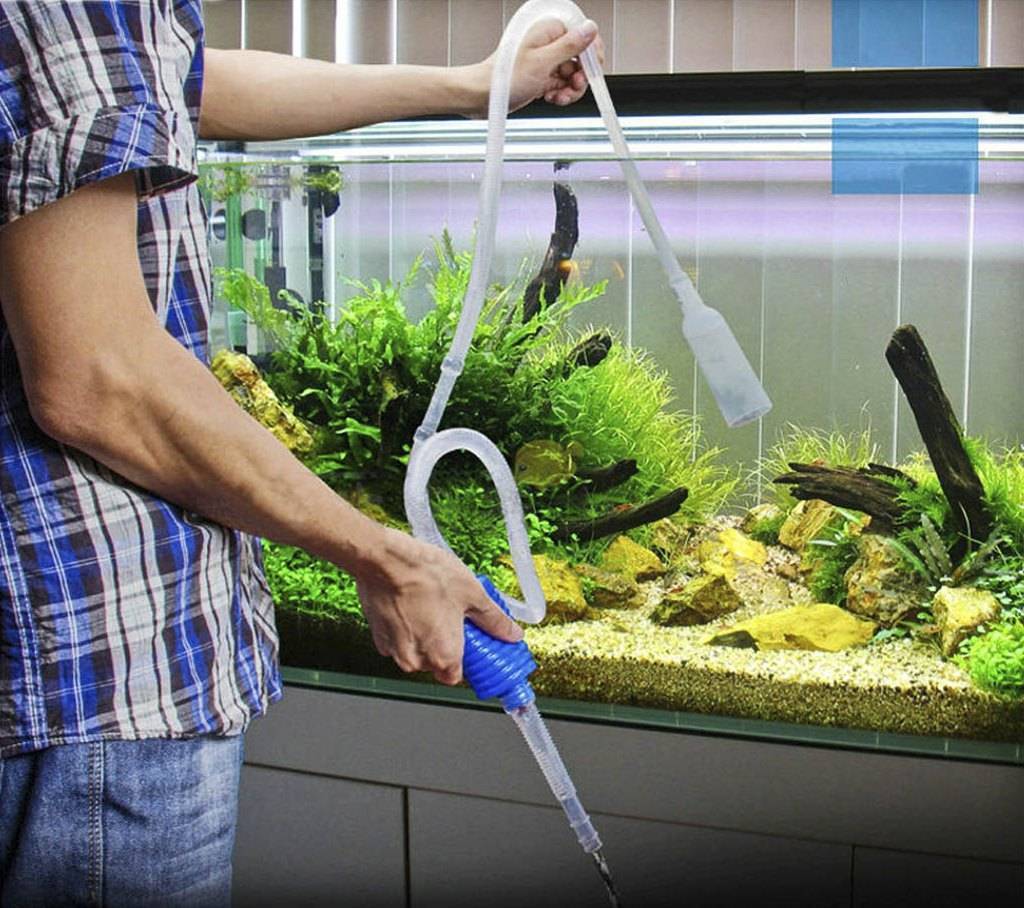 Фото: аквариумный сифон поможет собрать мусор из грунта и откачать старую воду