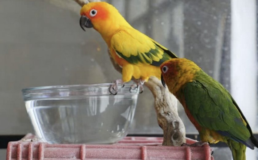 У попугаев температура тела гораздо выше, чем у людей, в среднем 41°С. Для нормального теплообмена вода нужна ежедневно, особенно если основу рациона составляют сухие корма, потому что без жидкости пернатого ждёт запор. При наличии сочных кормов и фруктов питомец может продержаться около суток, но потом начнётся обезвоживание.