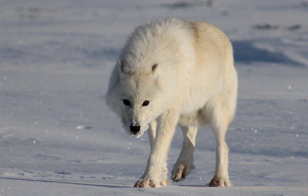 Приспособление к среде обитания у волков проявляется в окрасе и низкой теплопроводности шерсти, строении нижней части лап, расположении на нижней части ступней пахучих желез, форме и прочности зубов.