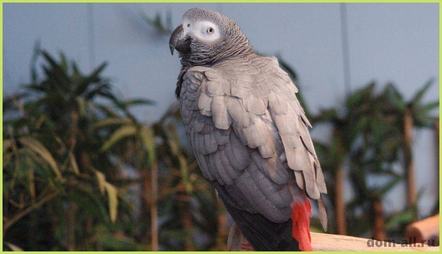 Попугай Жако – единственный вид в своем роде Paittacuss. Выделяют два подвида. Краснохвостый обитает в Центральной Африке к северу от экватора. Длина его тела достигает 35 см при массе около 400 г. Крыло длиной до 24 см, хвост – 9 см. Краснохвостый Жако имеет крупный клюв черного цвета, а лапы серого окраса. Оперение у взрослых особей пепельно-сероватого оттенка, перья на шее и груди окаймлены более светлым или темным цветом, что создает эффект ряби. Задняя часть спины и хвост окрашены в красный цвет.