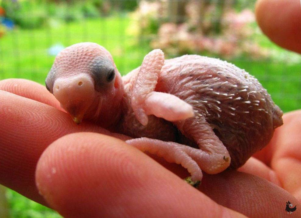 Волнистые попугаи рождаются на свет такими малюсенькими и беспомощными! Их вес всего 1 – 2 грамма. Они голые, слабенькие и совсем не похожи на своих подросших собратьев. Самки попугаев – заботливые и нежные мамы. Первое время птенчики не держат голову, постоянно лежат. Именно в таком положении мать и кормит птенцов, нависая над малышом и выпуская в клювик зобное молочко.