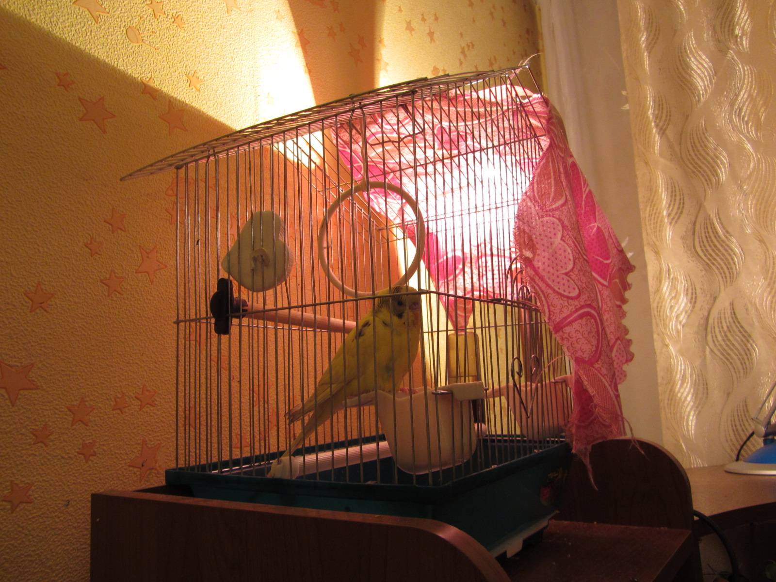 Если птицы чирикают и чрезмерно проявляют активность, чтобы успокоить питомцев, их «домик» накрывают темной тканью. При отсутствии света птицы постепенно успокаиваются. Такой метод можно попробовать. Как ловить попугая в комнате.