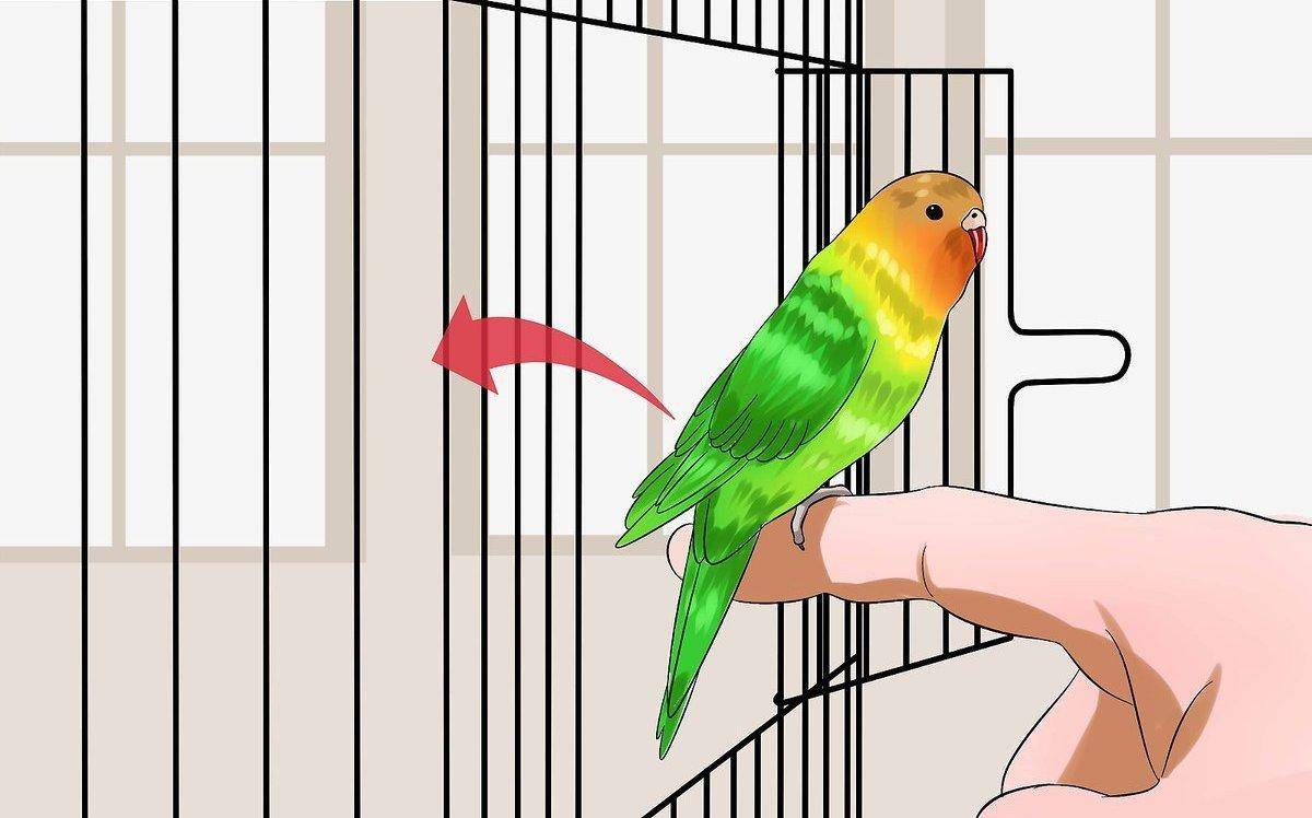 В идеале непосредственно загонять попугая в клетку не нужно, поскольку процесс возвращения его обратно должен протекать следующим образом: