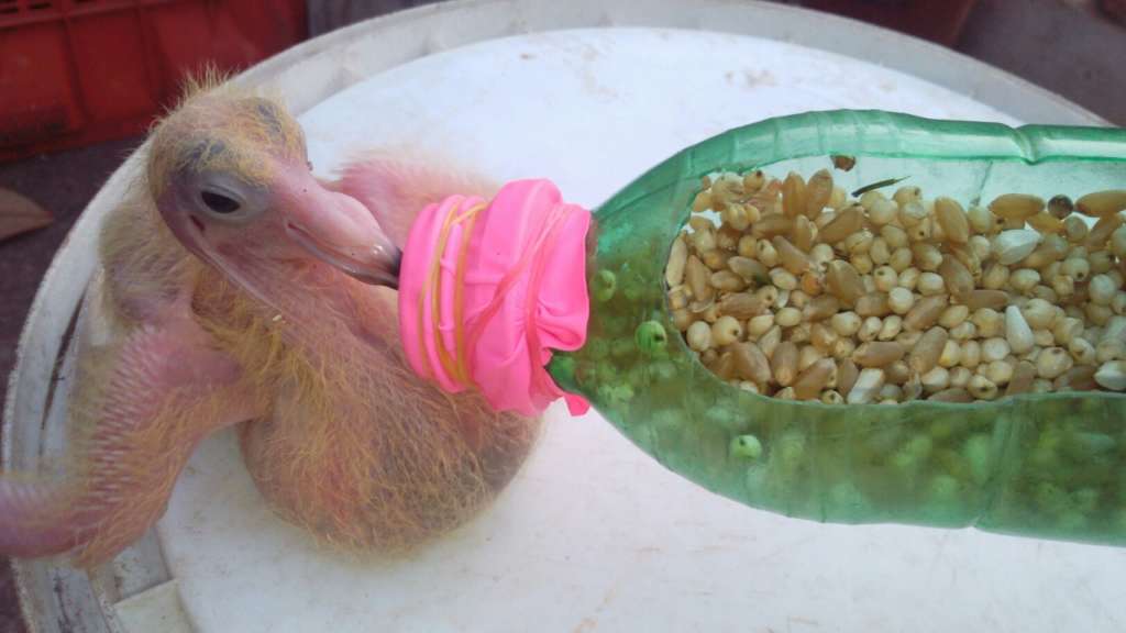 Если же новорожденный голубёнок остаётся без родителей и не может получать зобное молочко, чтобы он не погиб, ему нужно давать специальное компенсирующее питание.