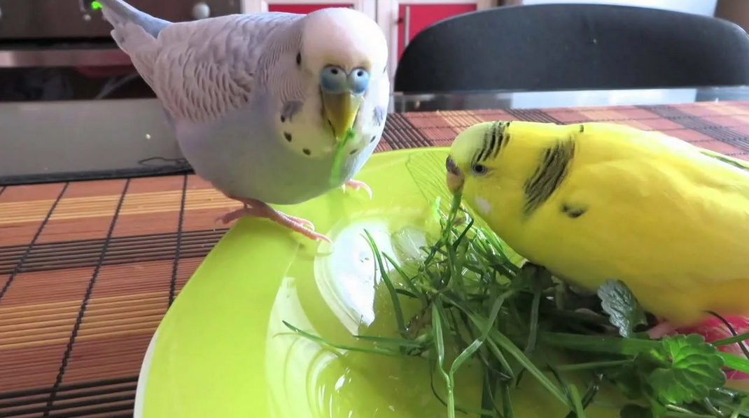 В рацион крылатого друга включается также и зелёный корм. Волнистый попугай питается листьями салата, некоторых деревьев и даже обычной травой. В такой пище много клетчатки и веществ, полезных для иммунной системы.