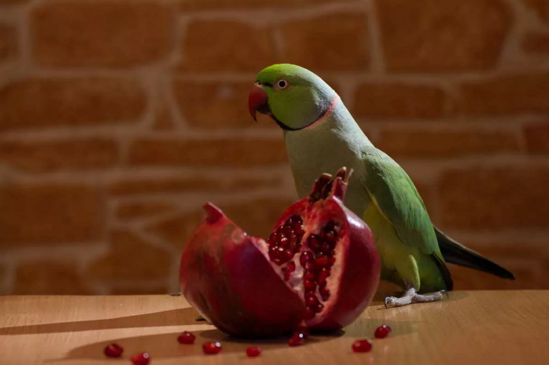 - Гранат – фрукт, который очень полезен для здоровья волнистого попугая. Он насыщает организм железом и другими микро- и макроэлементами, предотвращая развитие авитаминоза и анемии. Благодаря высокой концентрации витаминов А, В, С, РР фрукт укрепляет иммунитет попугая, повышая устойчивость к болезням. Для первого кормления предложите птице 1-2 зернышка, постепенно увеличивая порцию до 8-10 зерен.