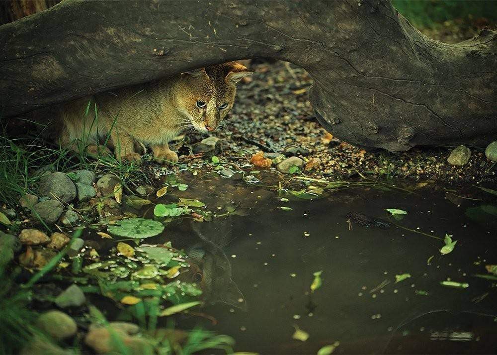 Камышовый кот любит селиться близ различных водоемов, облюбовав их густые кустарниковые и камышовые заросли