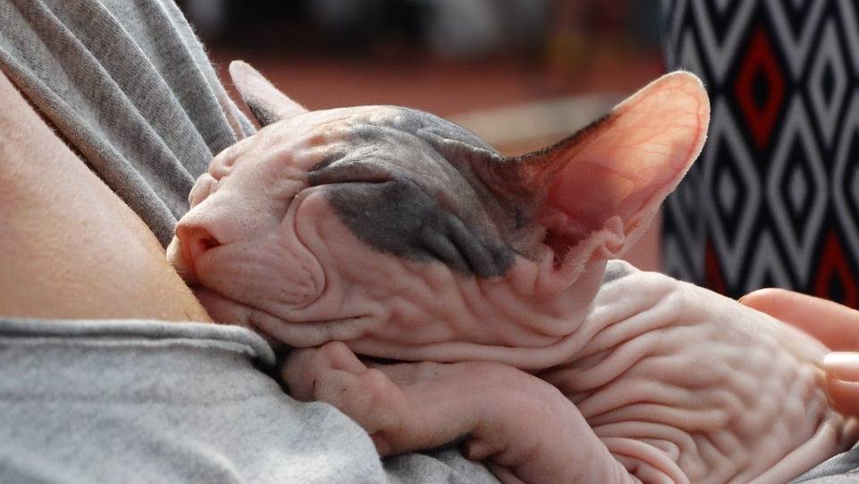 Уход за покровными тканями канадского сфинкса отличается некоторыми особенностями. Эти питомцы не линяют, как другие кошки, но из-за активной работы сальных желез их кожа кажется липкой на ощупь, пачкается и нуждается в постоянном очищении.