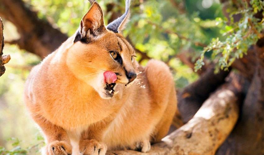 Характерная особенность этих животных заключается в том, что они способны продолжительное время обходиться без питьевой воды, а необходимую для организма жидкость получают из своей добычи. Подобно леопарду, остатки своего обеда кошка каракал, фото которой часто используют туристические агентства в своих рекламных буклетах, хранит на деревьях.