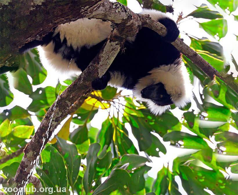 Черно-белые вари чаще всего срывают плоды, свисающие с тонких концов ветвей. Чтобы добраться до них, примат виснет вниз головой, уцепившись за ветки задними конечностями. Такая ловкость позволяет ему конкурировать с меньшими и более легкими лемурами.