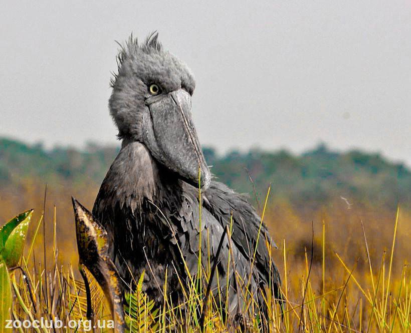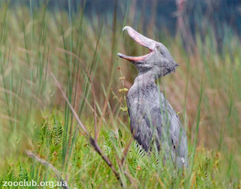 Первое, что бросится вам в глаза при взгляде на королевскую цаплю – огромный, как деревянный башмак, светло-желтый клюв, вооруженный свисающим крючком на конце. Кажется, что птица неудачно засунула голову в сабо и не смогла ее вытащить – настолько габариты вздутого клюва несоразмерны голове (в поперечнике практически равной ширине корпуса) и телу в целом.