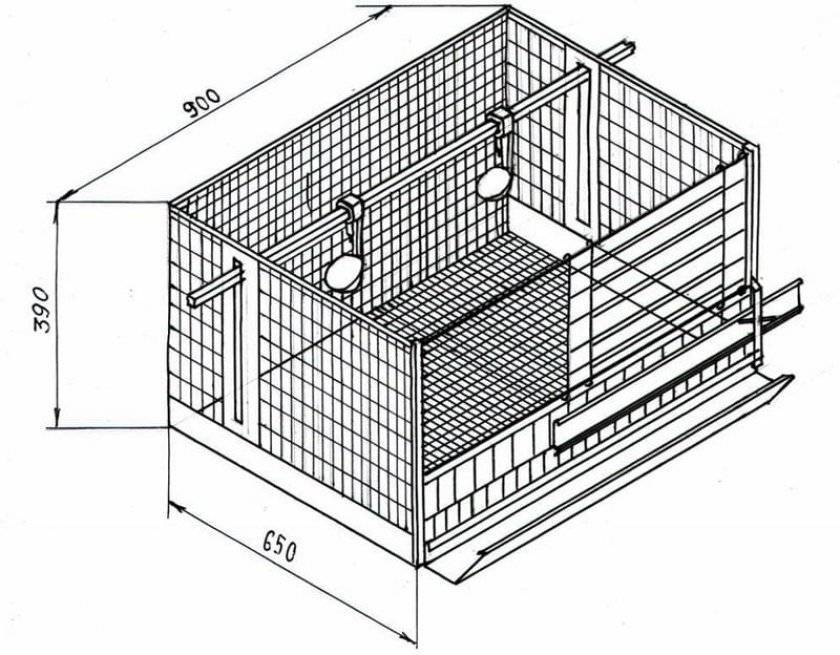 Исходя из этого, клетку на 10 голов можно изготовить по следующему чертежу: