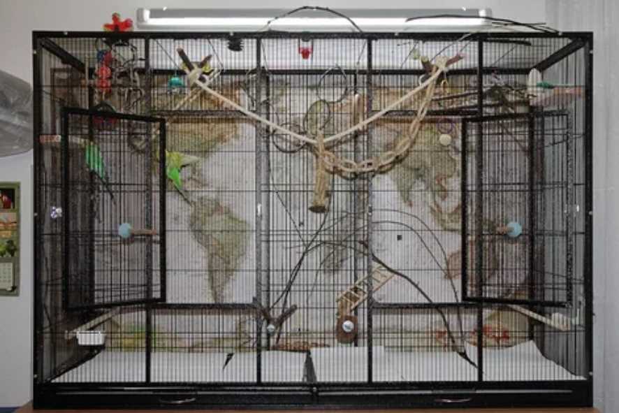 Хорошо, если будет минимум две дверцы одна в качестве входа-выхода, другая для водных процедур (место для крепления купалки). Если вы планируете разводить попугаев, то пригодится и третья дверца – для гнездового домика. Любая дверца должна хорошо закрываться и не иметь пружин или острых краев.