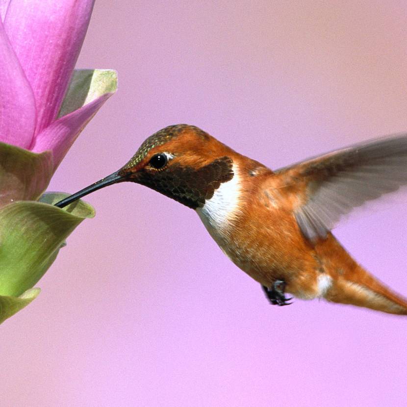 Важным моментом в описании особенностей птицы колибри является их способ добычи пропитания. Кроха, подлетая к цветам, зависает на месте и просовывает свой вытянутый острый клюв в бутон для добычи нектара.