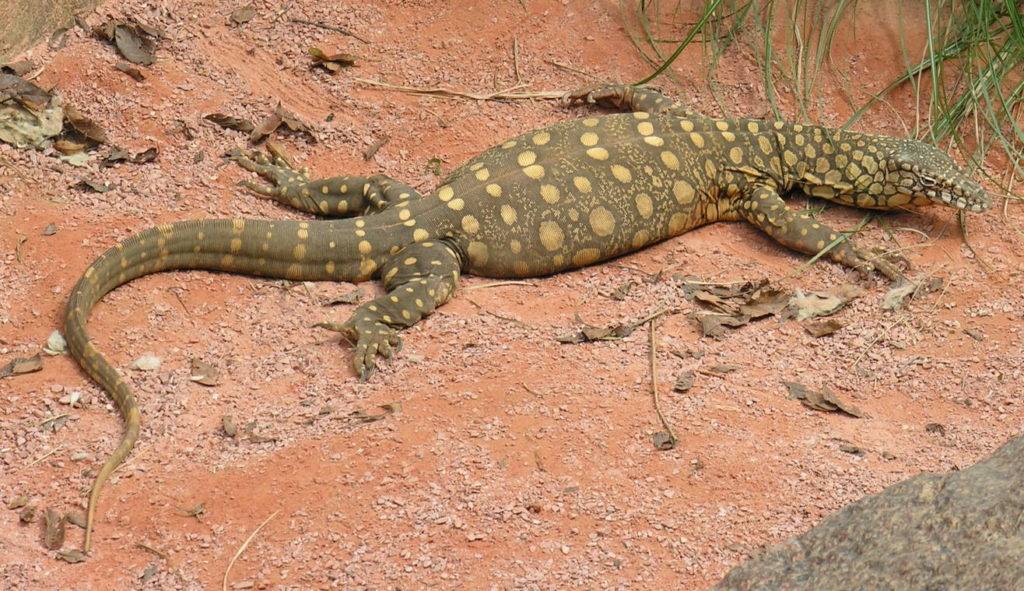 Эндемик острова Новая Гвинея. Известен также как крокодиловый варан. Ящерица имеет темно-зеленый окрас, тело и хвост покрыты светло-желтыми пятнами и полосами. Узнать ее можно и по закругленной тупой морде.