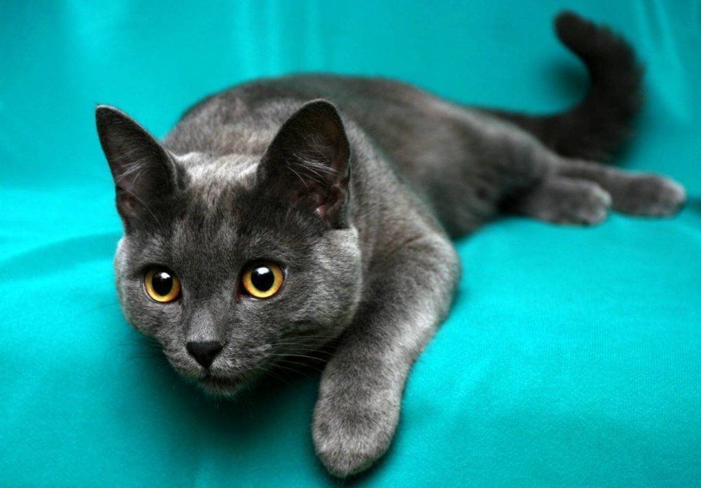 - Короткая, плотно прилегающая к телу шерсть. Русская голубая имеет еще и плотный подшерсток, который вовсе не развился у коратов из-за особенностей их родного климата.