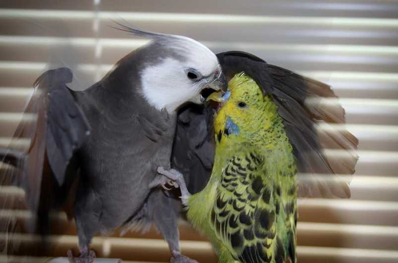 Знакомить пернатых друг с другом рекомендуется на нейтральной территории. Птиц выпускают из клеток поодиночке под строгим контролем. Одному попугаю разрешается подходить к клетке с новичком, осмотреть его. Затем аналогичные действия проделываются со второй птицей. Анализ поведения поможет выявить отношение кореллы и волнистика друг к другу. Отсутствие агрессии со стороны каждого, наличие тяги к общению станет решающим фактором при проведении совместных прогулок.