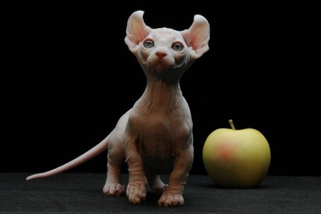 Лысая кошка Эльф – удавшийся эксперимент скрещивания сфинксов и керлов. Первый котенок редкой породы родился в Северной Америке у Кристен Лидом, внезапно потерявшей своего любимого канадского сфинкса. Он страдал генетическим заболеванием. Именно тогда Кристен решила вывести новый вид, которому бы не передавались пороки генетики.