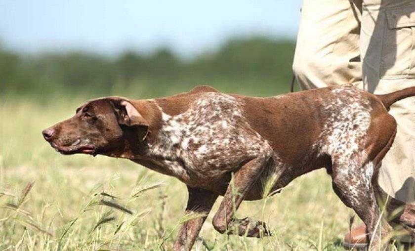 Немецкий курцхаар охотничья подружейная собака, довольно универсальная. Они любят людей и очень привязаны к своей семье, за которой готовы следовать куда угодно.